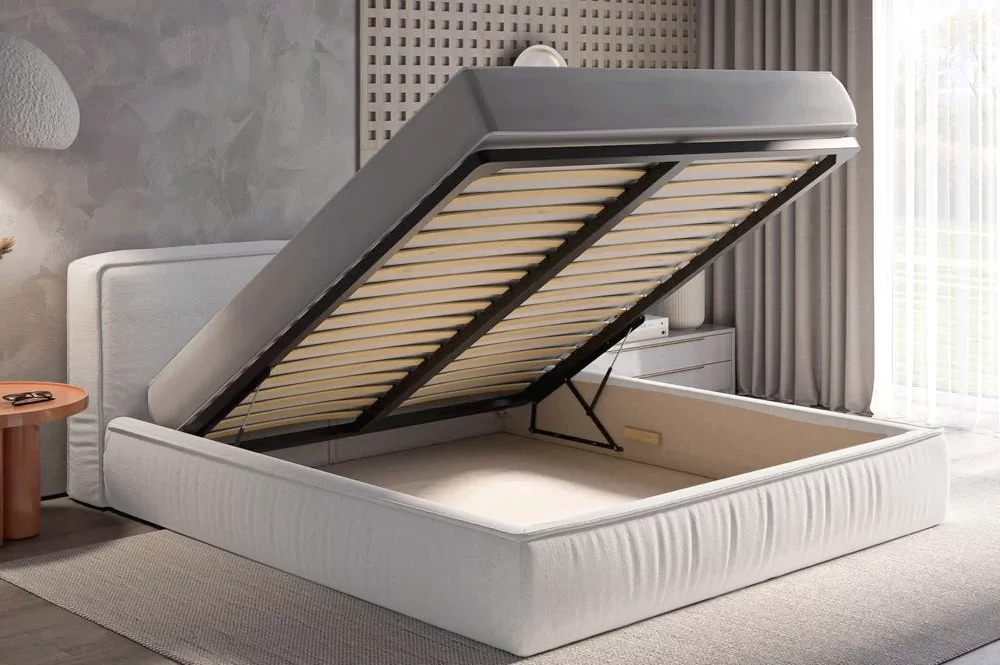 Ліжко оснащене підйомним механізмом та місткою нішею, яка дозволить зберігати постіль або інші речі та зберігати кімнату у порядку.