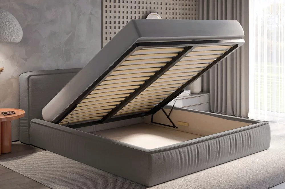 Ліжко оснащене підйомним механізмом та місткою нішею, яка дозволить зберігати постіль або інші речі та зберігати кімнату у порядку.