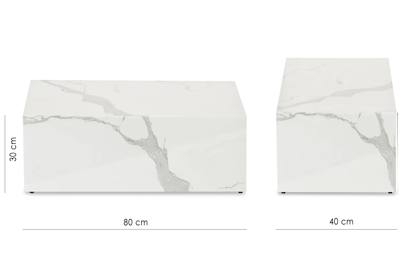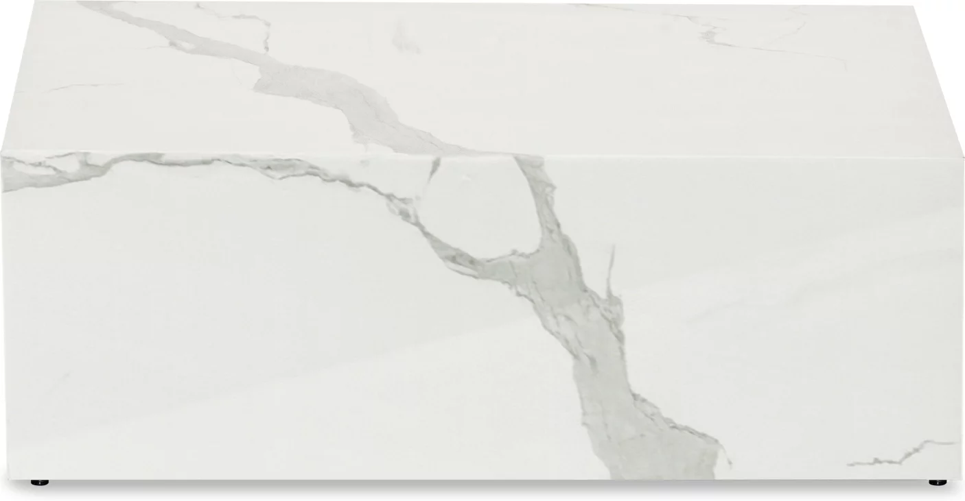 Кавовий столик Block це мінімалістичний невисокий але доволі просторий предмет меблів, який не тільки виконуватиме пракитчну роль, а ще стане сравжньою вишуканою окрасою вашого інтер'єру. Монолітний та грунтовний вигляд досягнуті не тільки завдяки простій геометричній формі, але й завдяки використанню елітарних матеріалів для виготовлення: важка металева конструкція вкрита білим мармуром, що видобувається в регіоні Маркіна, в Країнї Басків на півночі Іспанії.