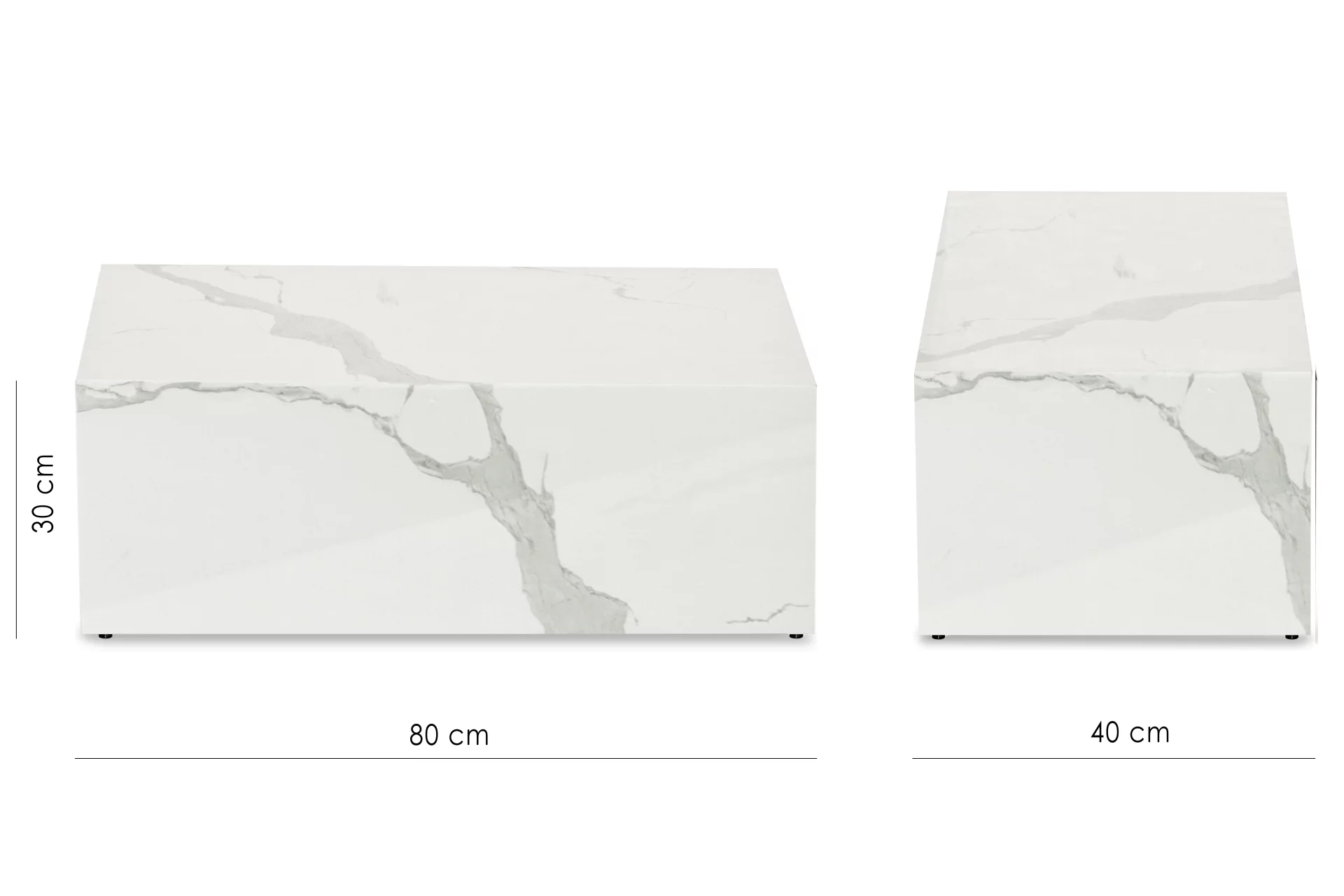 Кавовий столик Block це мінімалістичний невисокий але доволі просторий предмет меблів, який не тільки виконуватиме пракитчну роль, а ще стане сравжньою вишуканою окрасою вашого інтер'єру. Монолітний та грунтовний вигляд досягнуті не тільки завдяки простій геометричній формі, але й завдяки використанню елітарних матеріалів для виготовлення: важка металева конструкція вкрита білим мармуром, що видобувається в регіоні Маркіна, в Країнї Басків на півночі Іспанії.