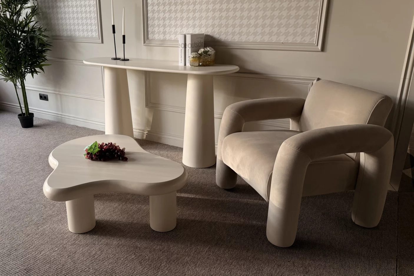 У дизайні крісла проста геометрія створює архітектурну взаємодію з навколишнім простором. Діалог форм зробить його акцентним предметом у просторі сучасної вітальні.