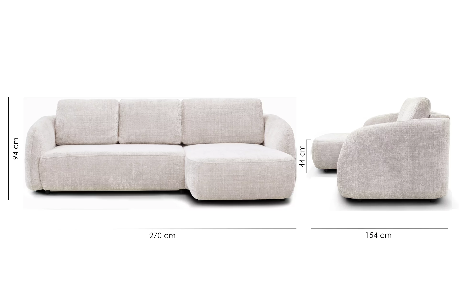 Завершують образ стильні ніжки з чорної сталі висотою 50 мм, які додають дивану візуальної легкості та сучасного вигляду. Додаткові пластикові ніжки контейнера висотою 15 мм забезпечують стійкість.