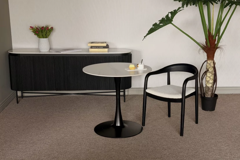 Стілець із підлокітниками Denali у мінімалістичному стилі. Цей елегантний та міцний предмет меблів поєднує у собі простоту скандинавського дизайну та сучасну функціональність. Темна дерев'яна рама створює теплий та позачасовий зовнішній вигляд. Легка, але міцна конструкція забезпечує надійність як у повсякденній експлуатації, так і для урочистих вечерь.