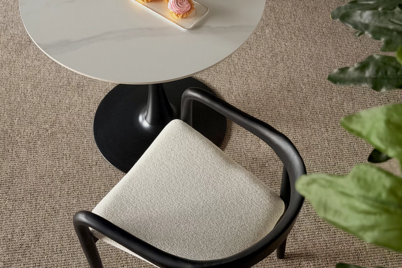 Біла м'яка подушка на сидінні додає комфорту та стильного контрасту з темним деревом. Мінімалістична спинка, плавно інтегрована в раму, робить стілець візуально привабливим та ергономічно зручним. Ідеальний вибір для їдальні, офісу чи вітальні.
