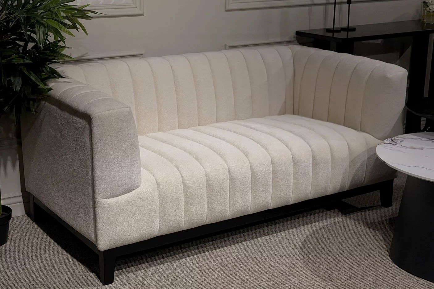 Ця модель подарує вашому максимум комфорту та розслаблення, завдяки м'якому сидінню і спинці, наче створенної з подушок, а також оббивці, виконаної з м'якої та приємної на дотик тканини букле, яка не тільки є практичним та зносостійким матеріалом, але й додає розкоші у ваш інтер'єр.