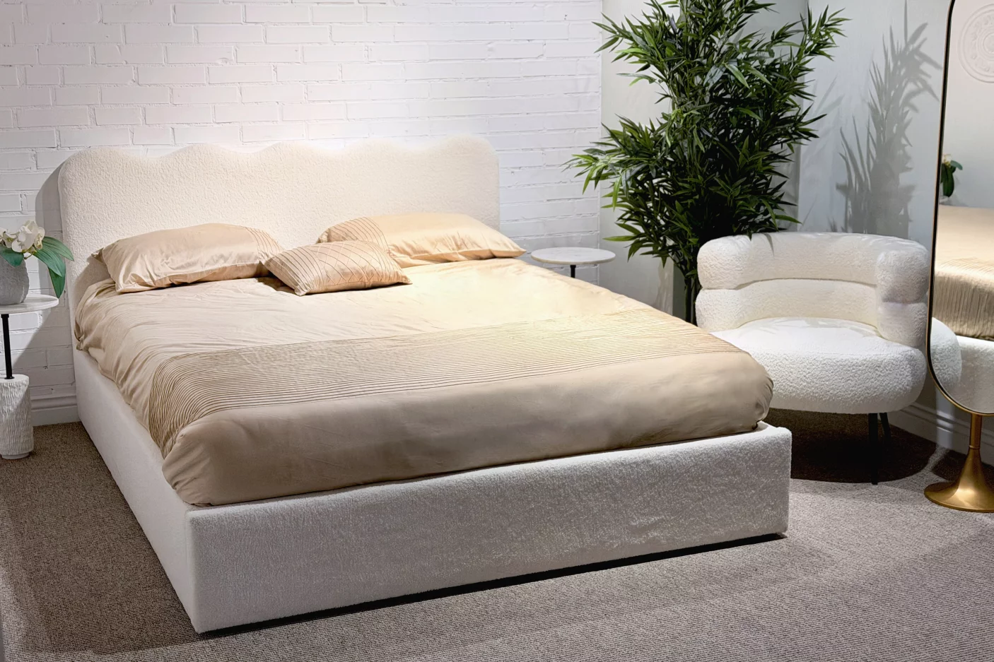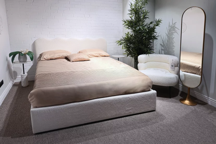 Відкрийте для себе новий рівень комфорту та стилю з ліжком Haven, яке створить унікальну атмосферу у вашій спальні. Ніжна хвиля на його узголів'ї та м'яка тканина тедді світло-бежевого відтінку створюють затишну атмосферу, що сприяє відпочинку.