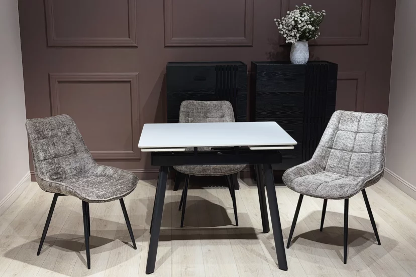 Стільниця зроблена з керамічної плитки з текстурою, що імітує мармур. Кожен стіл унікальний завдяки малюнку керамічної стільниці. Товщина стільниці - 10.5 мм.