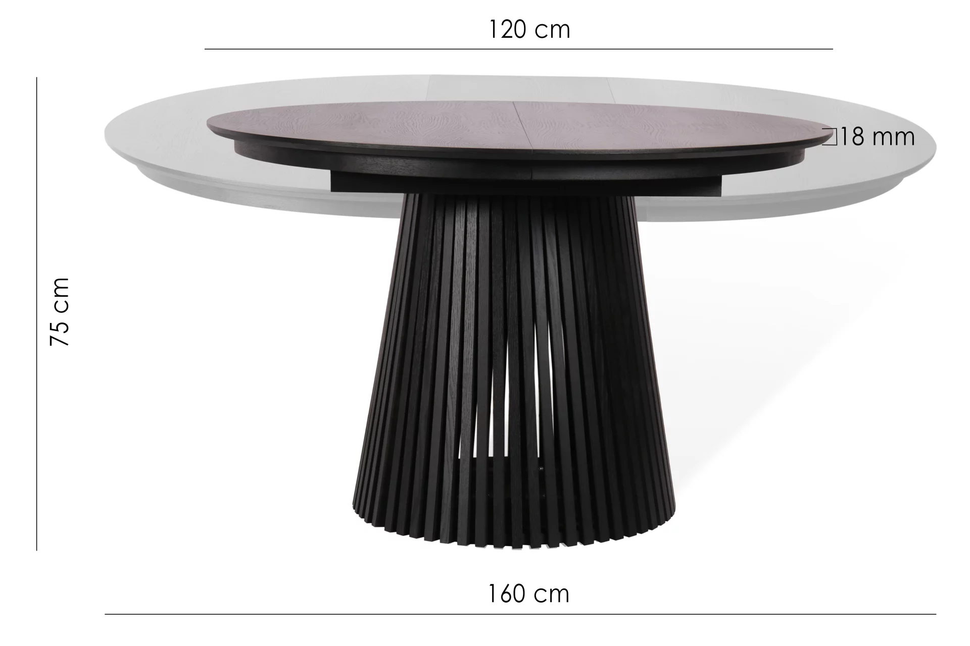 Завдяки просторому діаметру 120 см він ідеально підходить для зустрічей і трапез із родиною та друзями. А можливість розкладання до 160 см за бажанням дозволить вам запросити навіть дуже велику компанію до своєї вечірки!