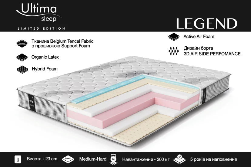 - Belgium Tencel Fabric: розкішний чохол із прошивкою Support Foam для первинного розслаблення.