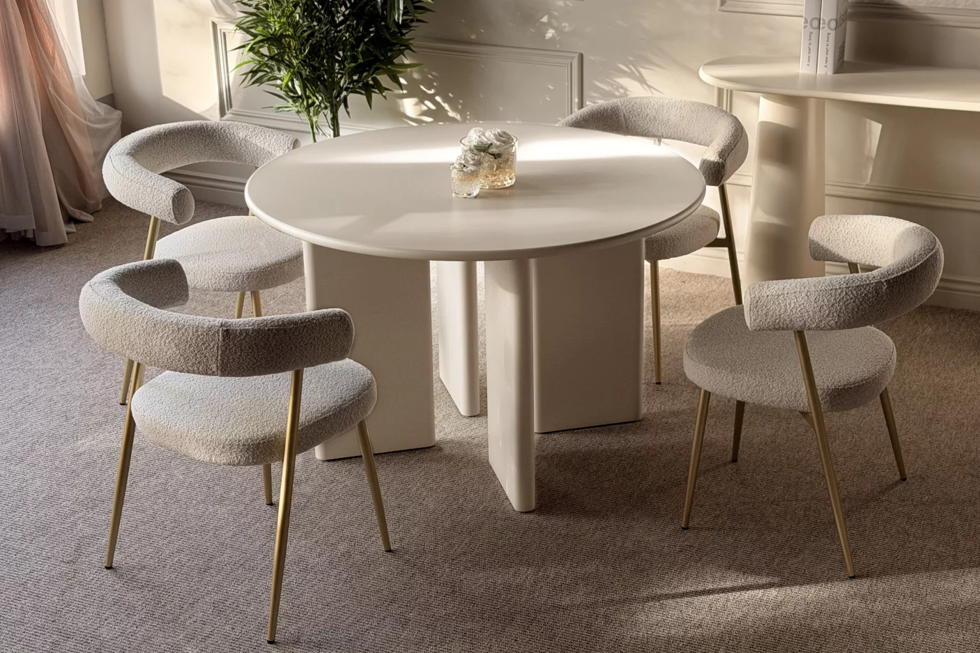 Особливістю цього обідньго столу круглої форми є дуже легка вага та мобільність, які зумовлені виготовленням його з легких природніх матеріалів: стільниця та ніжки з МДФ. Він сповнює обідній простір затишком і гармонією, привертаючи погляд своєю естетикою.