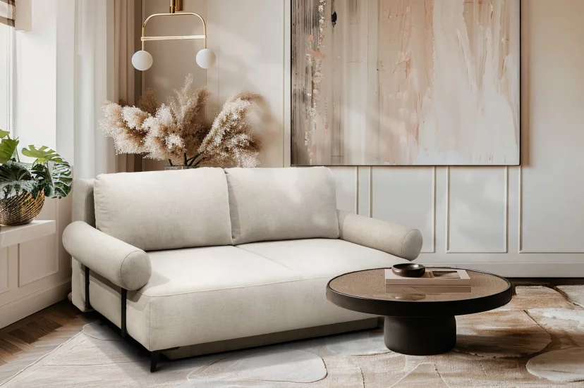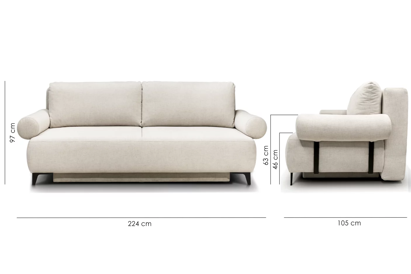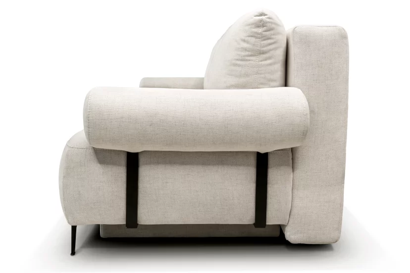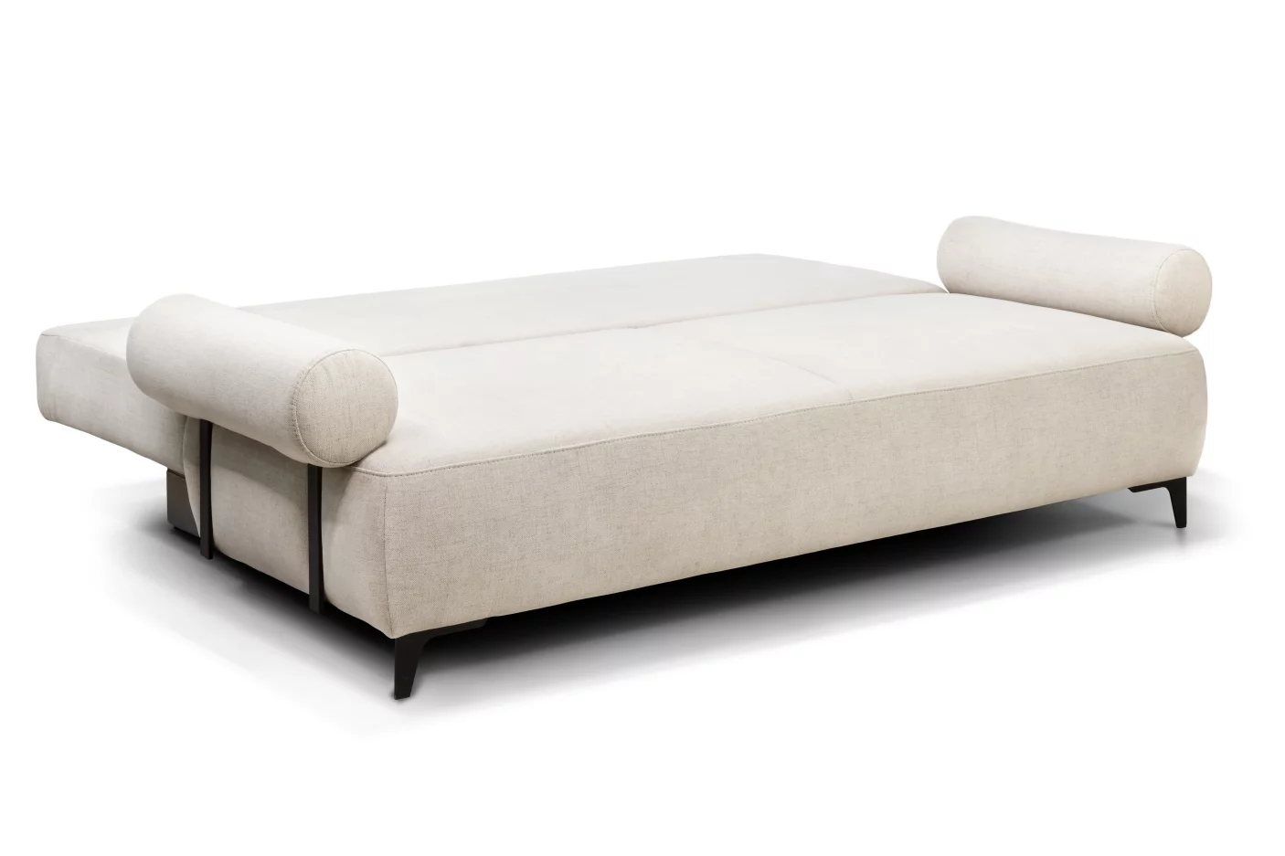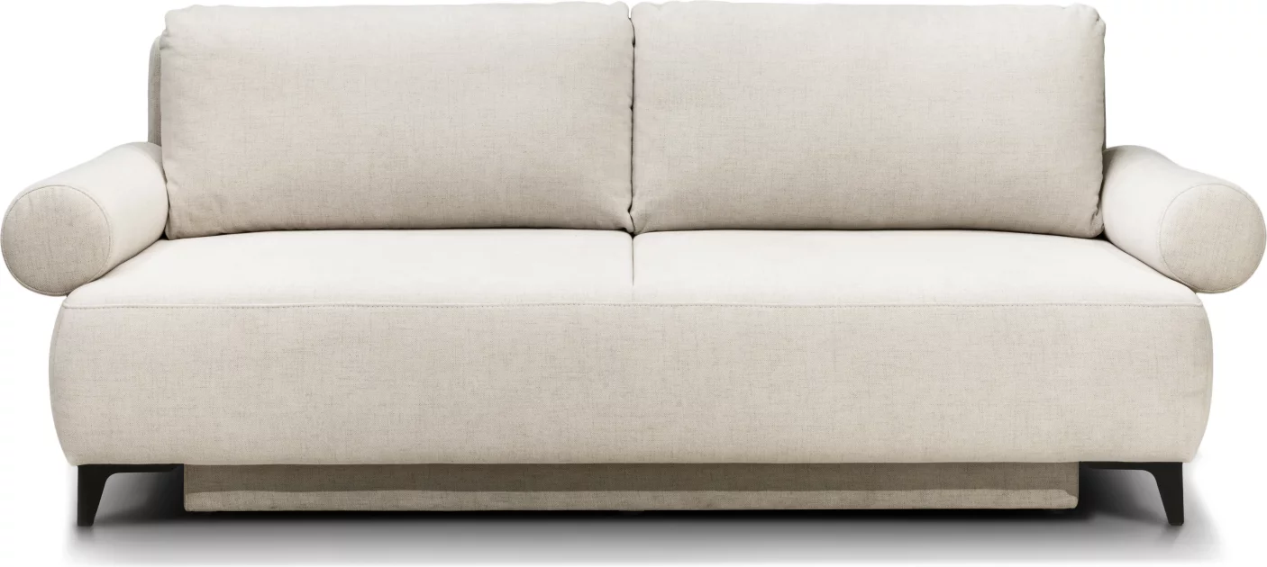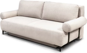 Бічні ніжки та ніжки переднього сидіння виконані з металу чорного кольору висотою, що надає виробу сучасного вигляду та елегантості. Ніжки контейнера, де ховається ніша для зберігання білизни, зроблені з пластику чорного кольору висотою 15 мм. Цей диван легко трансформується у комфортне спальне місце.
