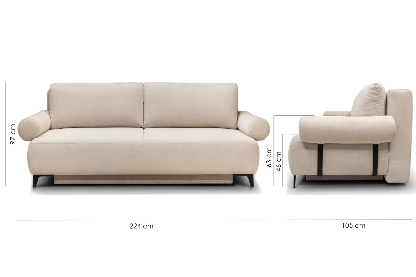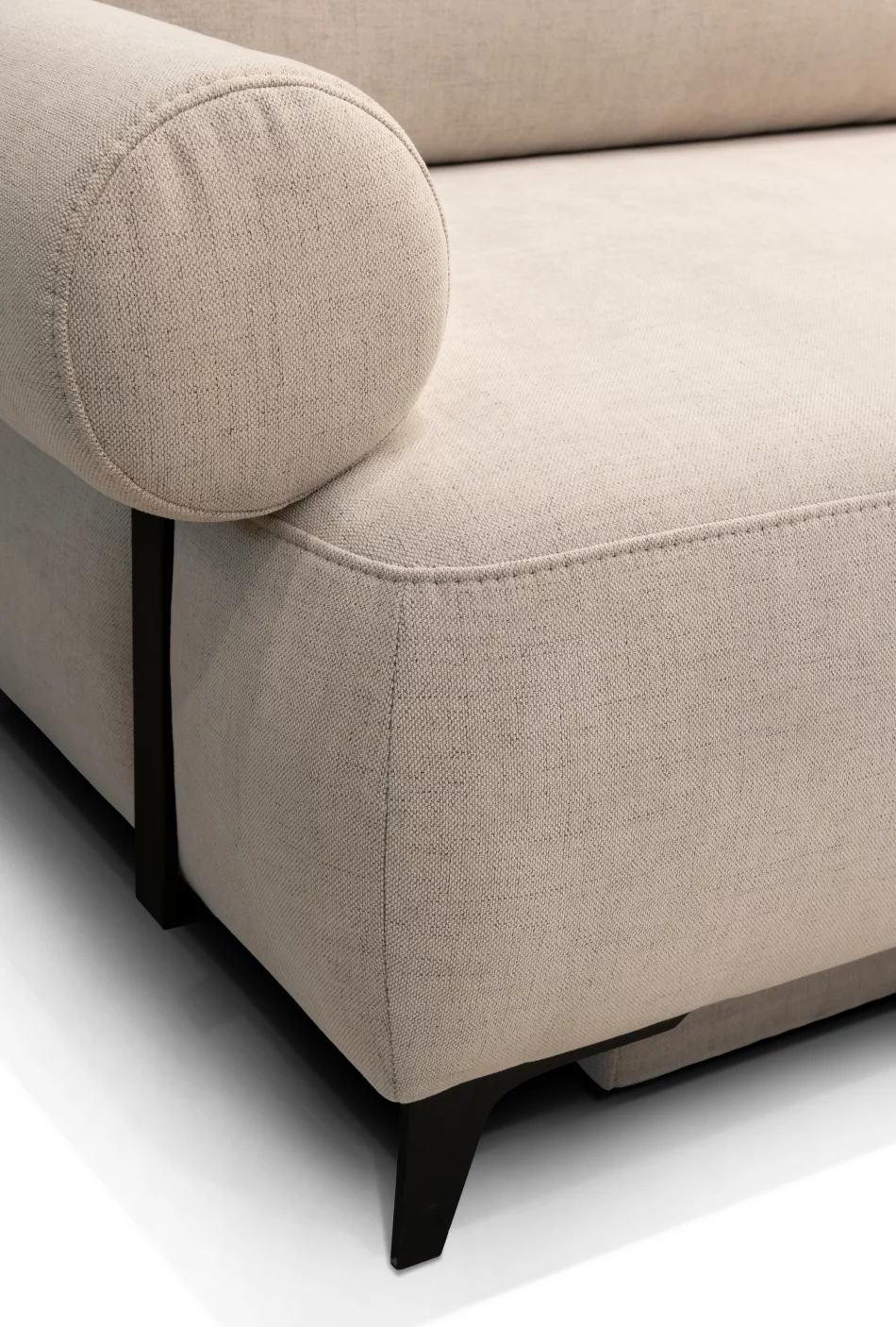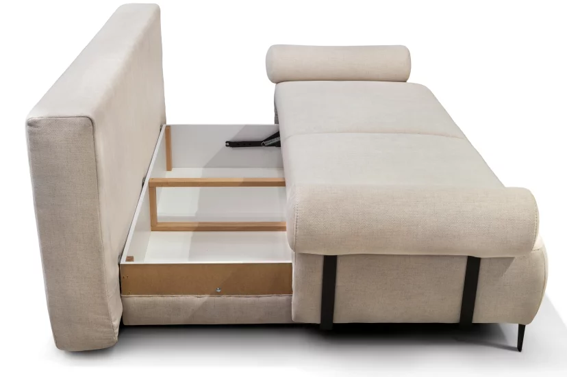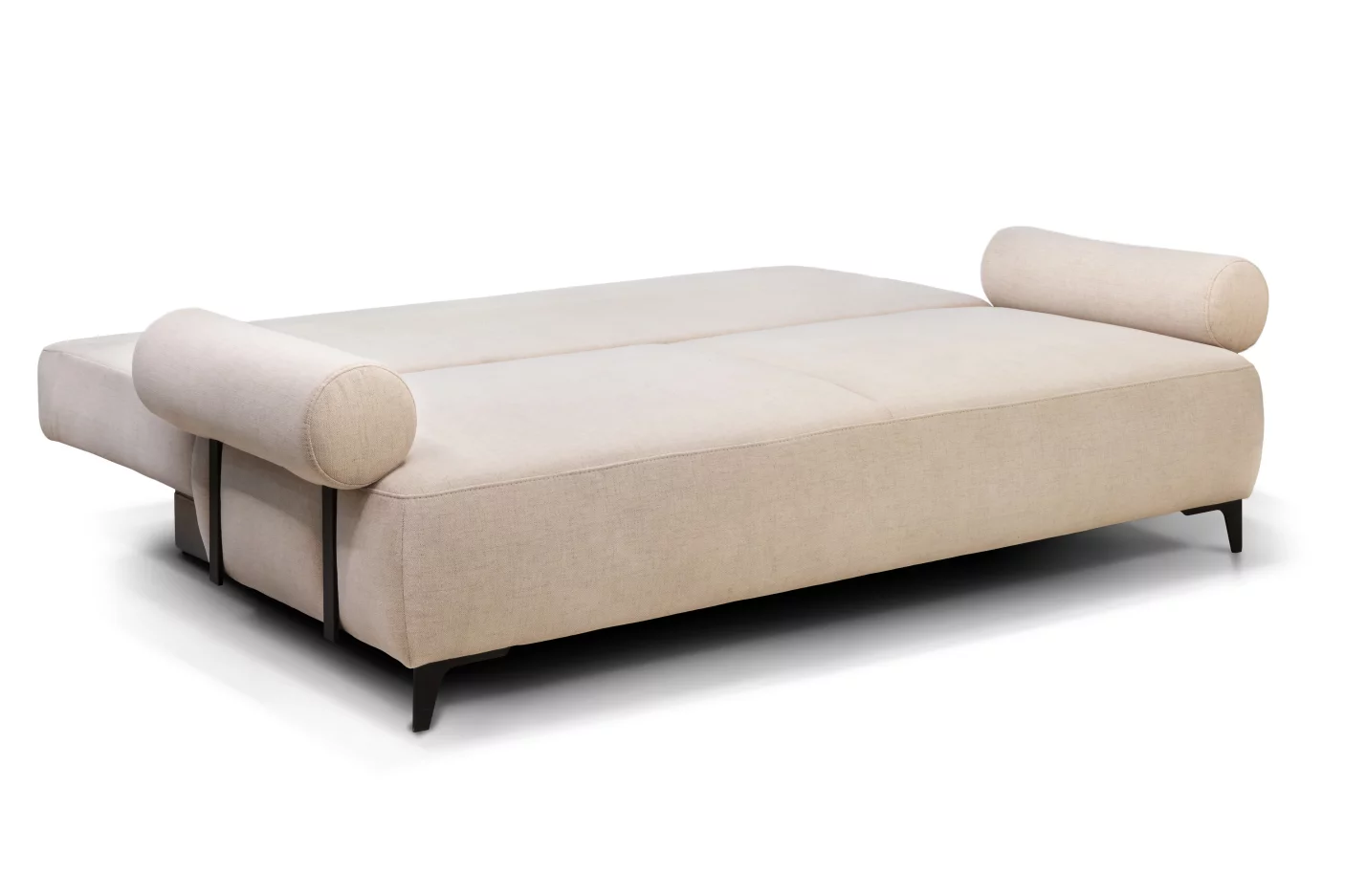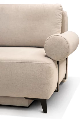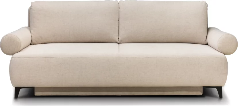 Бічні ніжки та ніжки переднього сидіння виконані з металу чорного кольору висотою, що надає виробу сучасного вигляду та елегантості. Ніжки контейнера, де ховається ніша для зберігання білизни, зроблені з пластику чорного кольору висотою 15 мм. Цей диван легко трансформується у комфортне спальне місце.