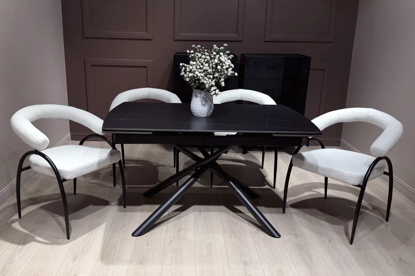 Обідній стілець із підлокітниками Lumen підкорює з першого погляду своїм вишуканим дизайном. Оббивка з модної тканини Тедді чудово поєднується з чорними металевими ніжками, висока спинка та підлокітники забезпечують зручність та комфорт.