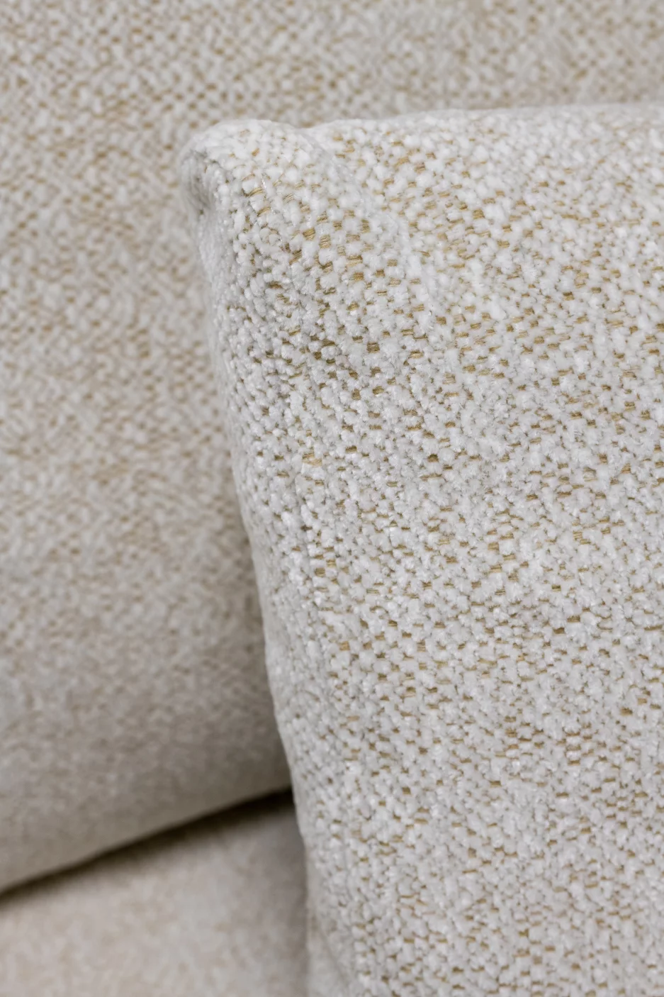 Оббивка - це сучасний шеніл кремового кольору, що поєднує приємну текстуру з високою стійкістю до зносу. Тканина повністю складається з поліестеру, є безпечною та стійкою до вицвітання.