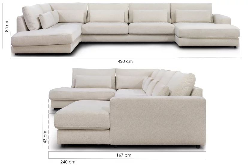 Міцний каркас з хвойної деревини та інших надійних матеріалів забезпечує довговічність конструкції. Сидіння та подушки наповнені комбінацією якісного пінопласту на пінополіуретану, що гарантує ідеальну м'якість і підтримку, завдяки також інтегрованим у сидіння зигзаообразним пружинам. М'якість та пружність подушок зумовлена також додаванням силіконового грануляту.