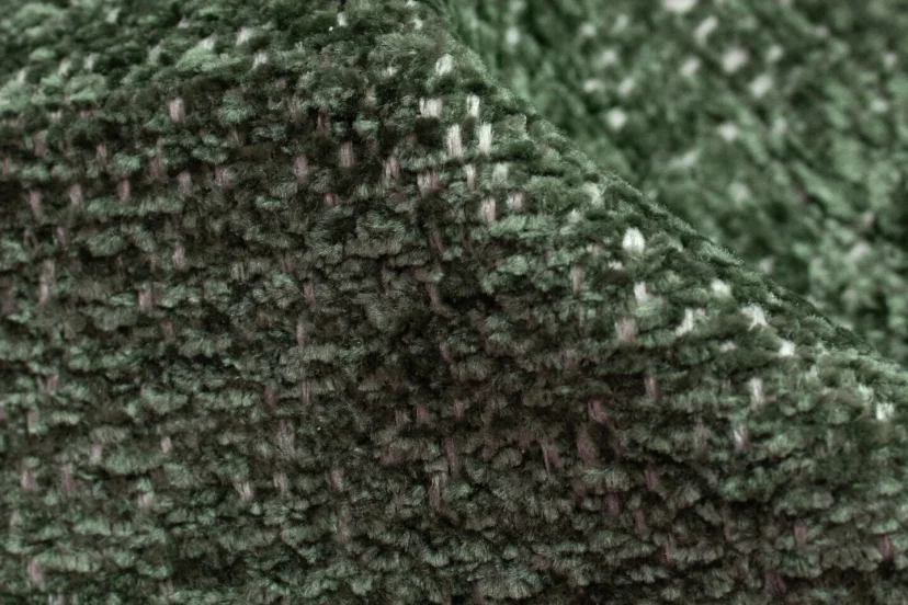 Оббивка: Тканина Raven 77— це високоякісна оббивна тканина насиченого зеленого кольору з виразним тривимірним (3D) ефектом та м'яким, надзвичайно приємним на дотик покриттям, що нагадує букле або шерсть. Вона ідеально підходить для оббивки диванів завдяки поєднанню елегантності та високої довговічності.
