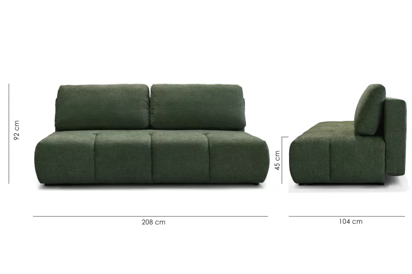 Бічні частини та переднє сидіння мають ніжки з чорного металу висотою, що надає виробу сучасного вигляду.