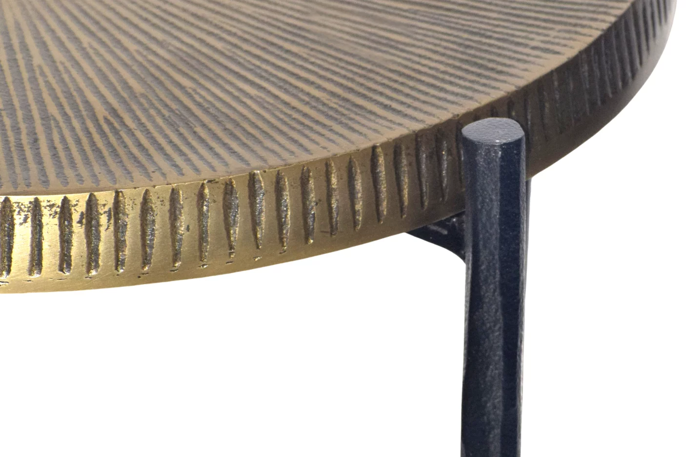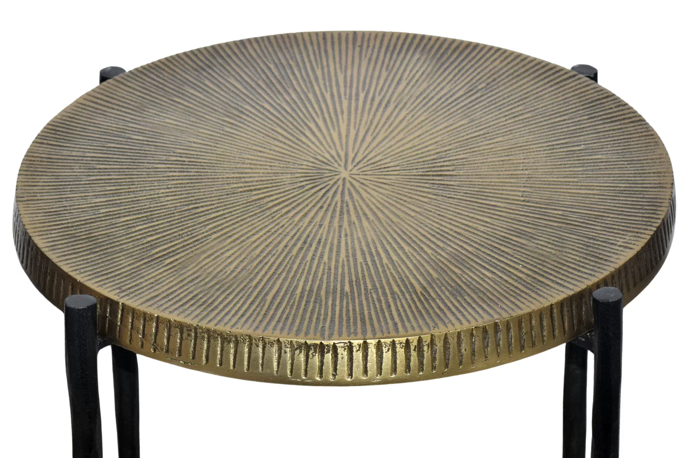 Стільниця виготовлена з металу в золотавій античній обробці, що забеспечує не тільки стільний вигляд, але й також довговічніть та практичність використання. Цей столик не тільки прикрашає простір, але й дуже зручний у використанні, мобільний, дозволяє вільно переміщати його за вашими потребами.
