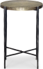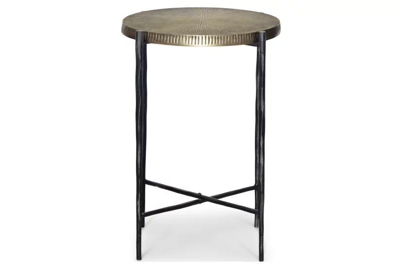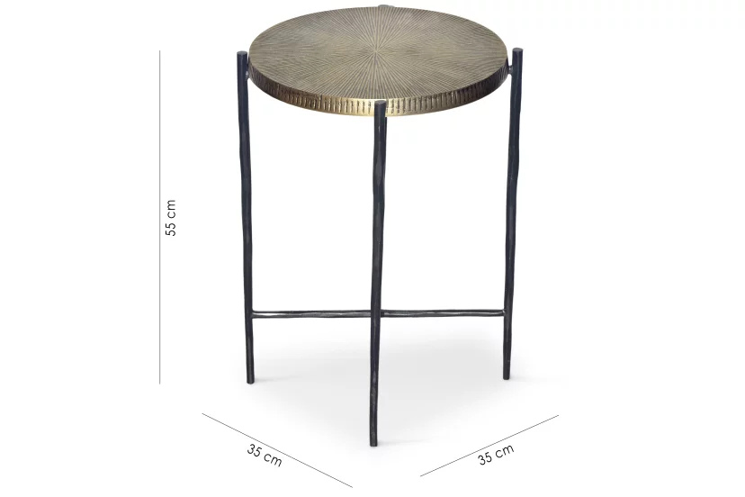 Стільниця виготовлена з металу в золотавій античній обробці, що забеспечує не тільки стільний вигляд, але й також довговічніть та практичність використання. Цей столик не тільки прикрашає простір, але й дуже зручний у використанні, мобільний, дозволяє вільно переміщати його за вашими потребами.