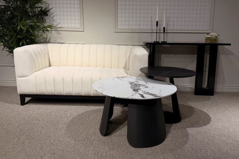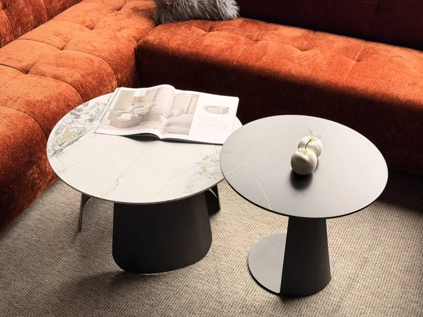 Столики також можна розміщувати в різних місцях кімнати, пересуваючи їх незалежно один від одного для оформлення зон відпочинку, які все ж залишатимуться візально поєднаними в інтер'єрі.
