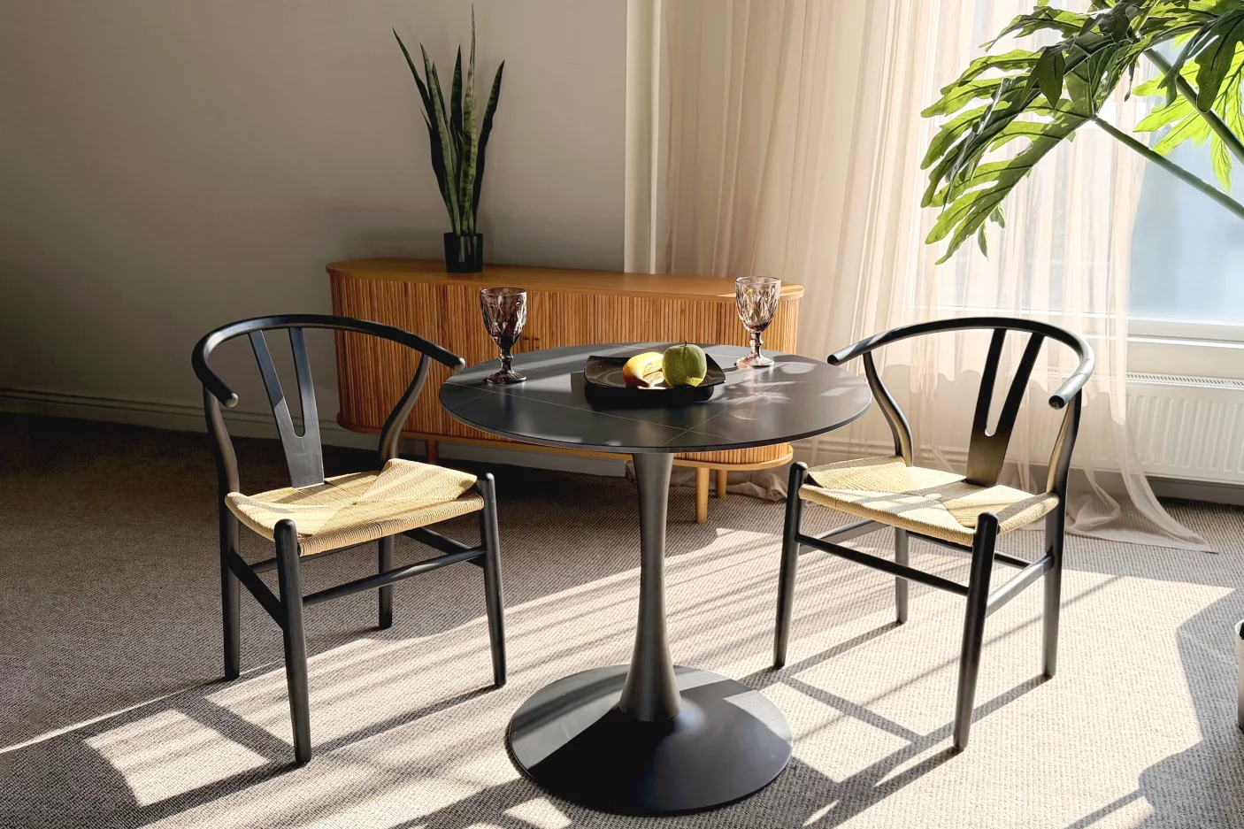 Стильний варіант обіднього столу, що стане справжньою прикрасою будь-якої їдальні. В моделі Olsen гармонійно поєдналися достатньо велика стільниця та витончена опора у вигляді тонкої ніжки на круглій основі, що додає йому елегантного та сучасного вигляду.