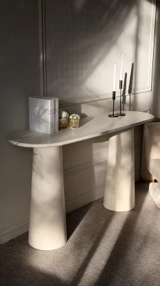 Естетика консольного столу Orb мінімалістична, але водночас має характер, ідеально підходить для тих, хто шукає особливий штрих у своєму домі. Це практичний предмет, який легко інтегрується в будь-який сучасний інтер'єр, завдяки своєму нейтральному, але водночас вражаючому дизайну. Завдяки витонченим та вишуканим лініям цей предмет виділяється в будь-якій кімнаті, будь то вітальня чи передпокій.