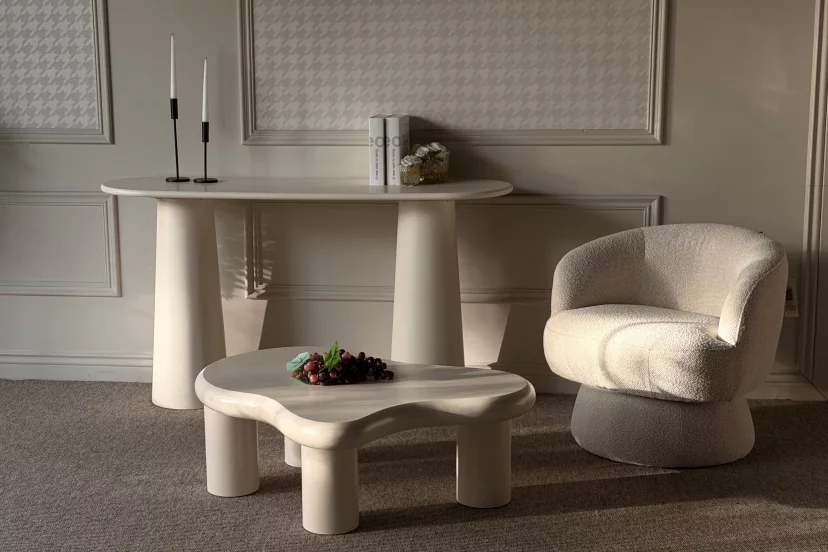 Консольний стіл Orb є втіленням ідеального балансу між стилем та функціональністю. Він має конструкцію, виготовлену з МДФ, що забезпечує міцну стійкість та легкість у пересуванні, зберігаючи при цьому сучасний та привабливий вигляд.