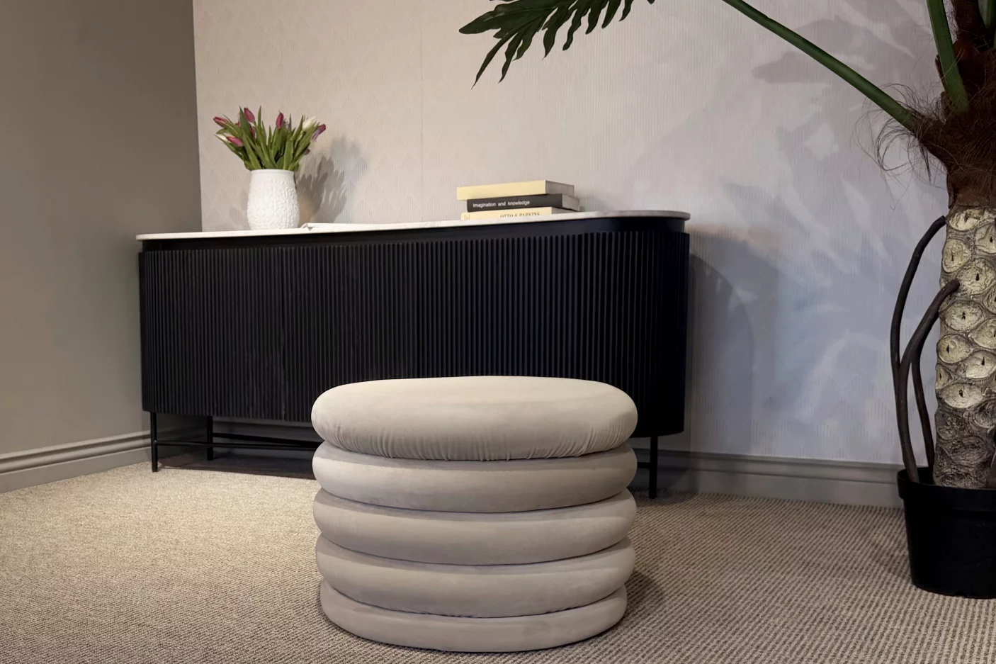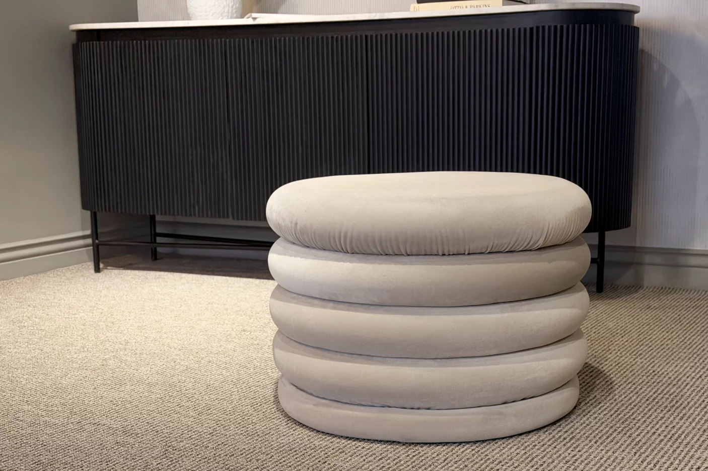 Оббивка виконана з м'якого та щільного велюру без "пишучого ефекту", яка завжди зберігає естетичний однорідний вигляд, на відміну від звичайного велюру, на якому молжуть залишатися сліди дотиків.
