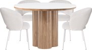 Кругла форма стільниці додає простору шарму та гармонії, а міцна плита з МДФ, покрита арктично білою керамікою, гарантує міцність і довговічність.