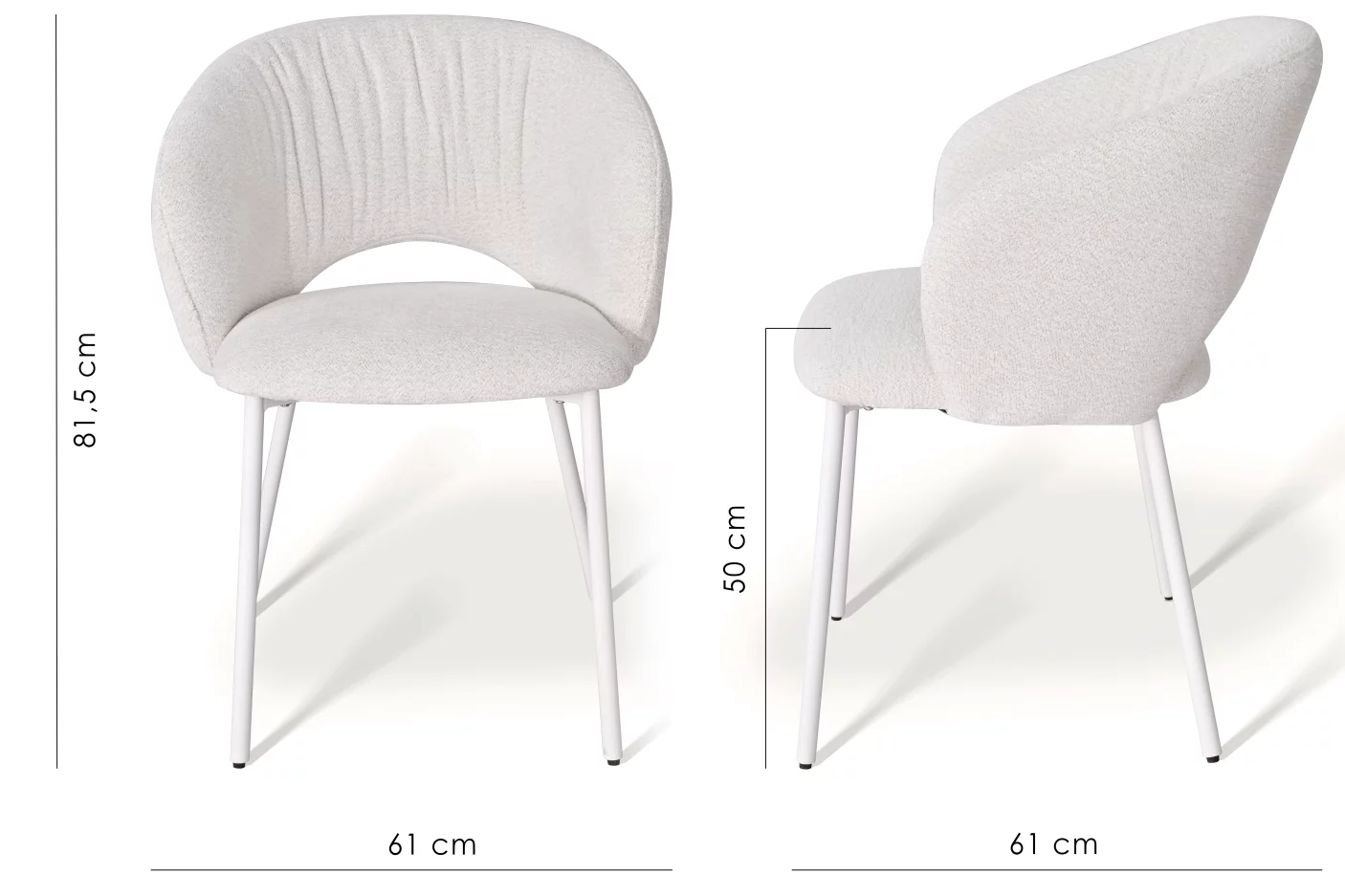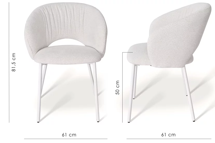 Розкішна оббивка виконана з якісного та зносостійкого шенілу, довговічної та приємної на дотик тканини, підкреслена тонкими білими ніжками з металу, які випромінюють вишуканість.