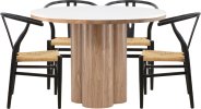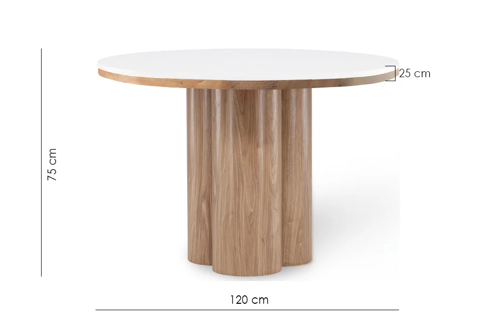 Кругла форма стільниці додає простору шарму та гармонії, а міцна плита з МДФ, покрита арктично білою керамікою, гарантує міцність і довговічність.
