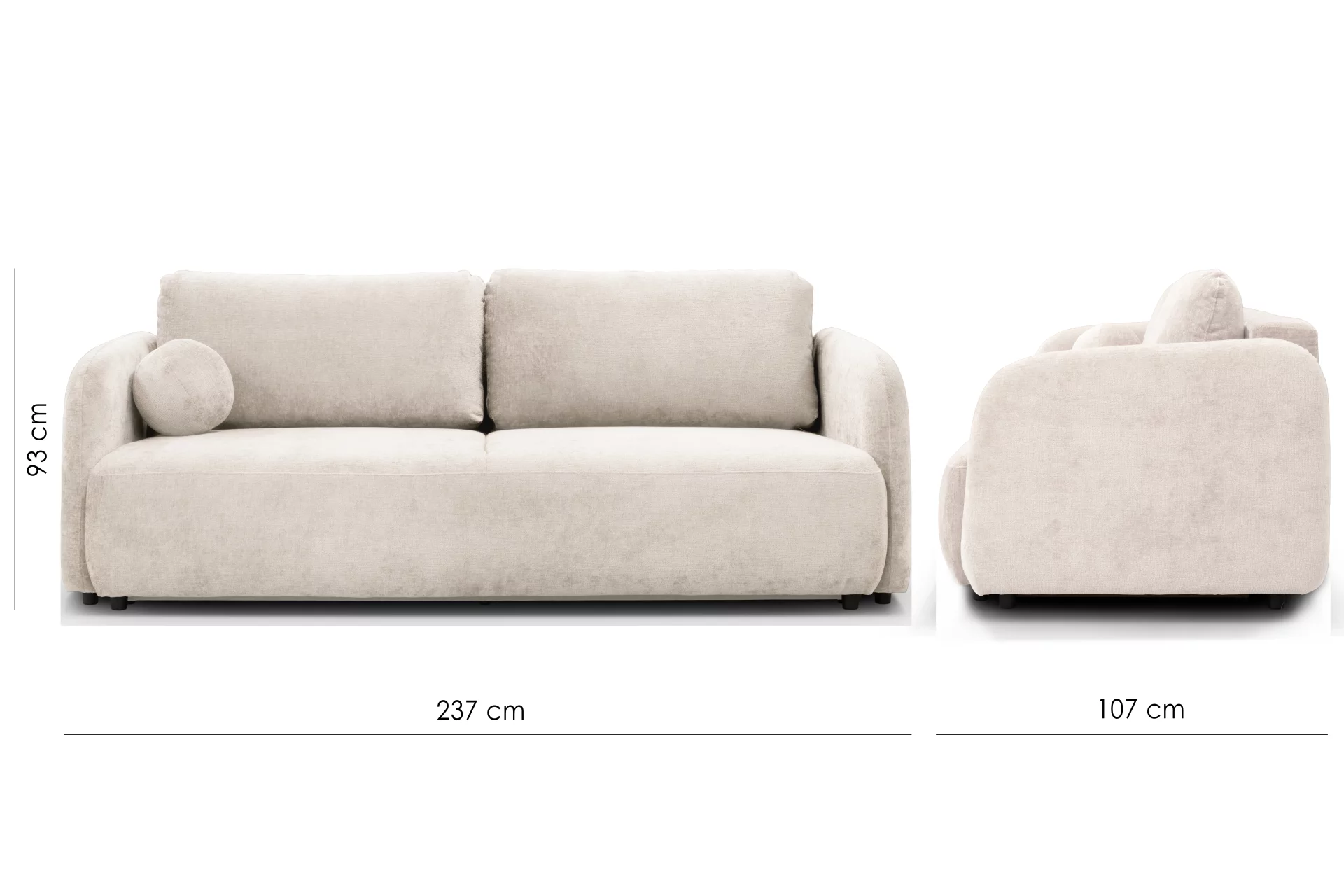 Диван має у зручні пологі підлокітники та кулеподібну декоративну подушку, що забеспечує комфорт та естетичний вигляд.