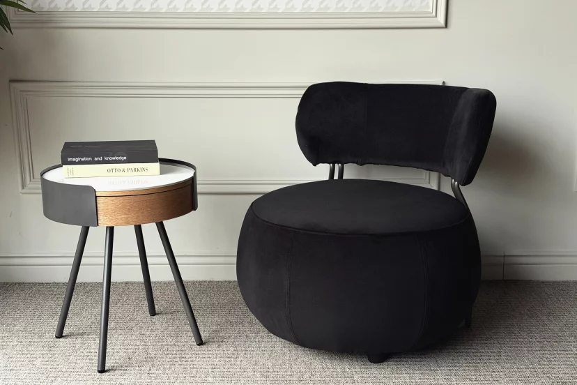 Оббивка виконана з м'якого та щільного велюру без "пишучого ефекту", яка завжди зберігає естетичний однорідний вигляд, на відміну від звичайного велюру, на якому молжуть залишатися сліди дотиків. Ергономічна спинка та широке сидіння забезпечують відмінну підтримку спини, створюючи ідеальні умови для відпочинку. Ніжки оригінальної форми стануть цікавим штрихом силуету.