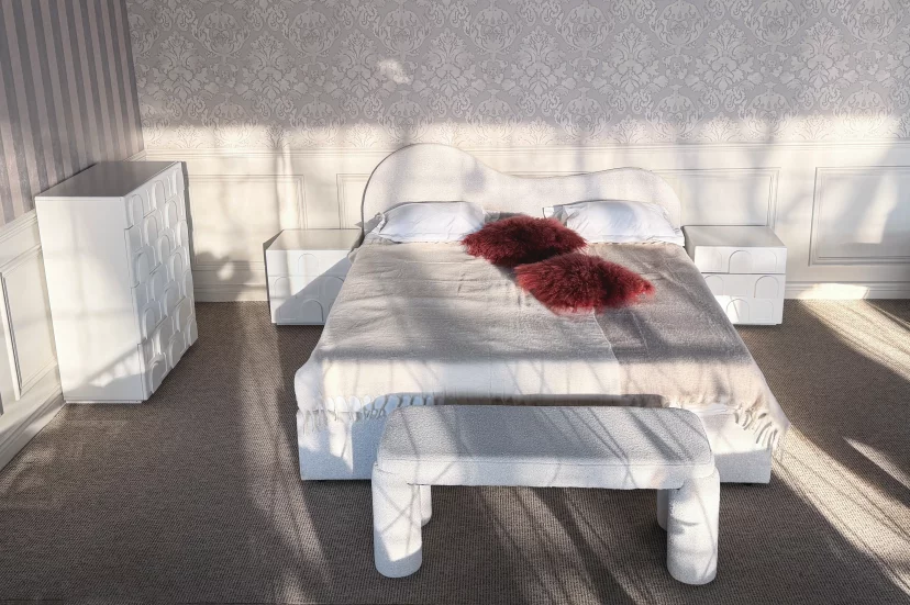 Оббивка з м'якого та приємного на дотик букле вносить відчуття затишку та комфорту в інтер'єр.