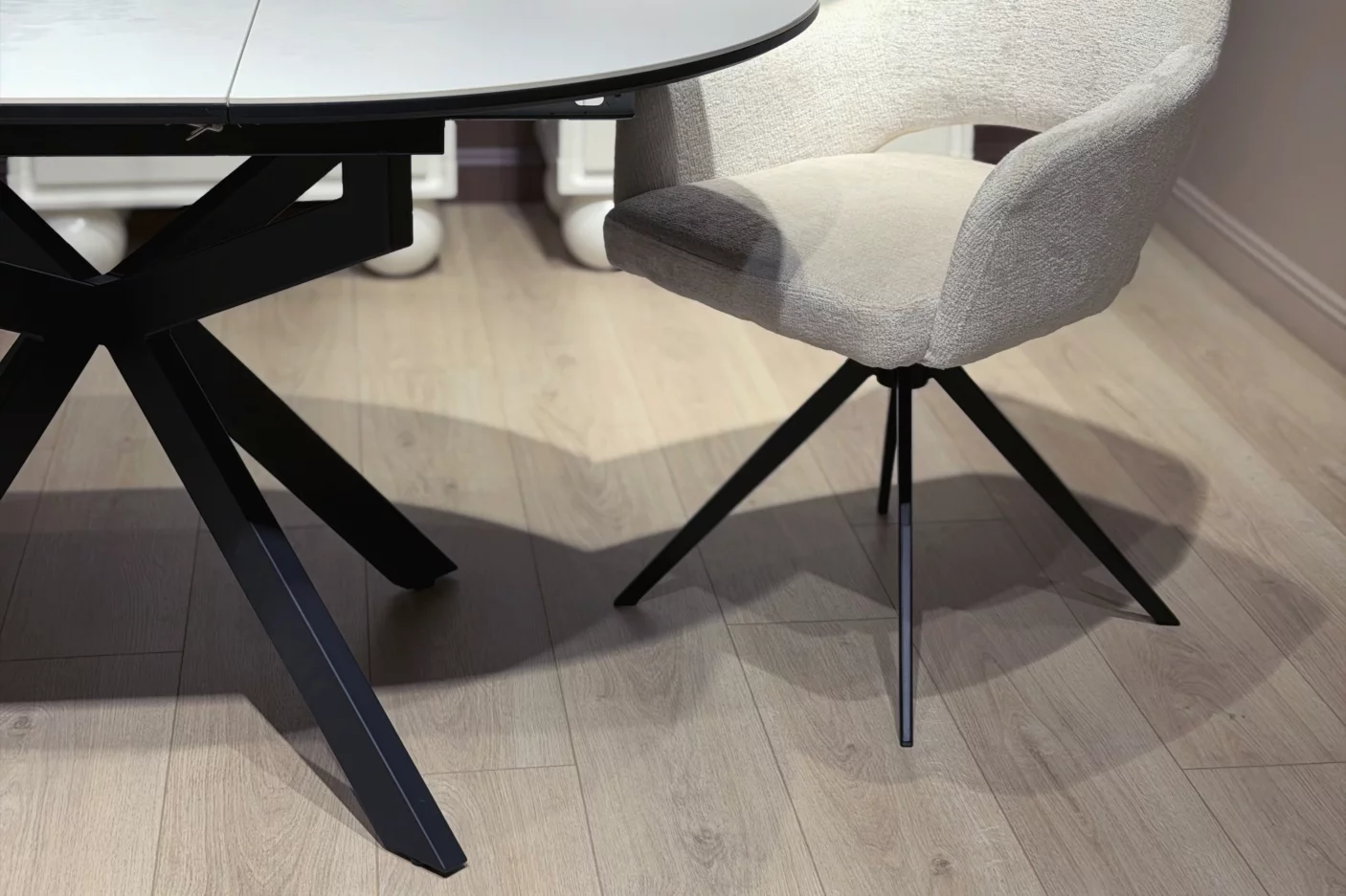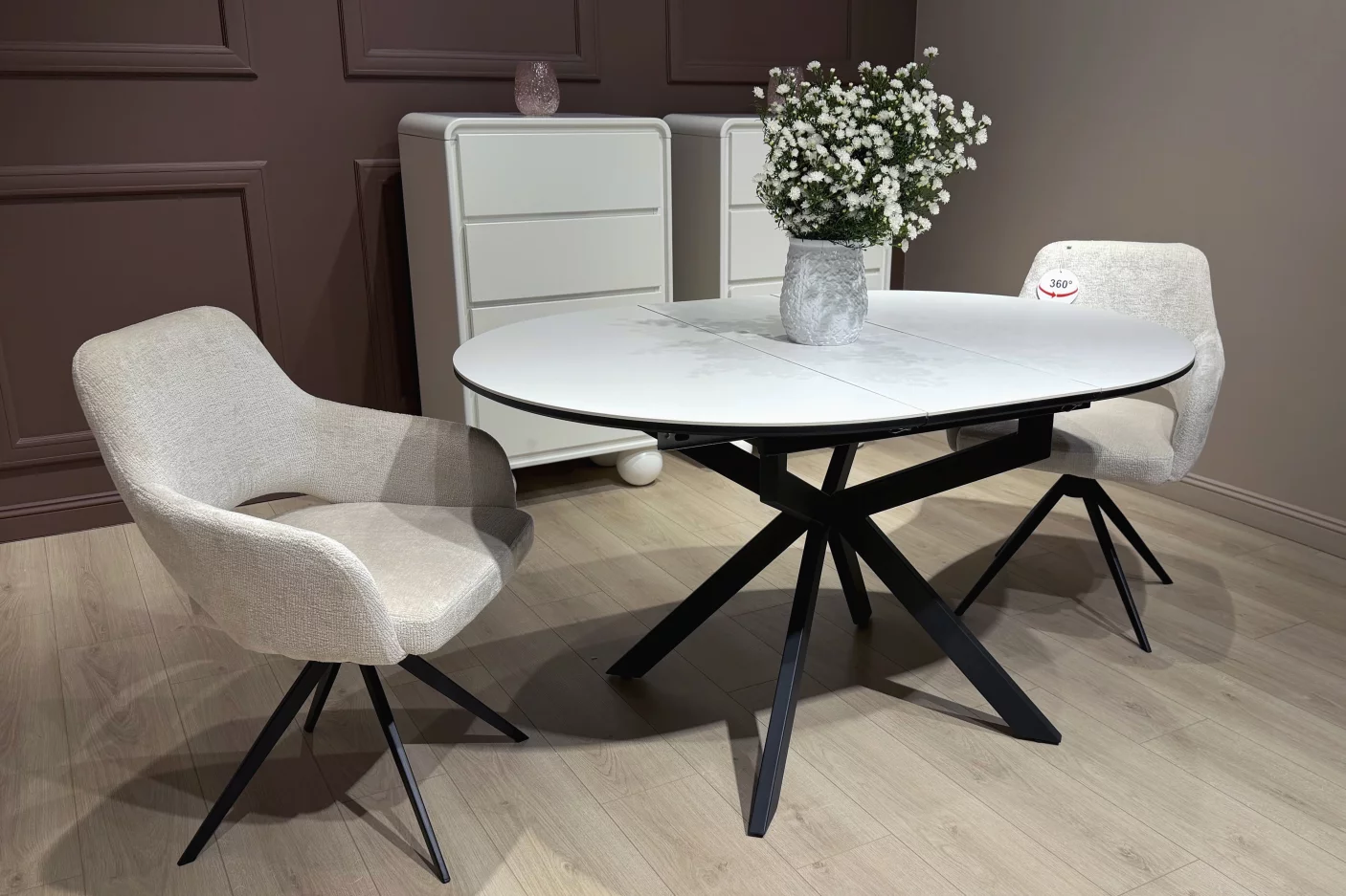 Круглий стіл Tilla поєднує в собі сучасний дизайн та практичну функціональність. Верх столу виготовлений з кераміки товщиною 11 мм. Це робить стіл повітрянішим, але в той же час надає йому стійкості.