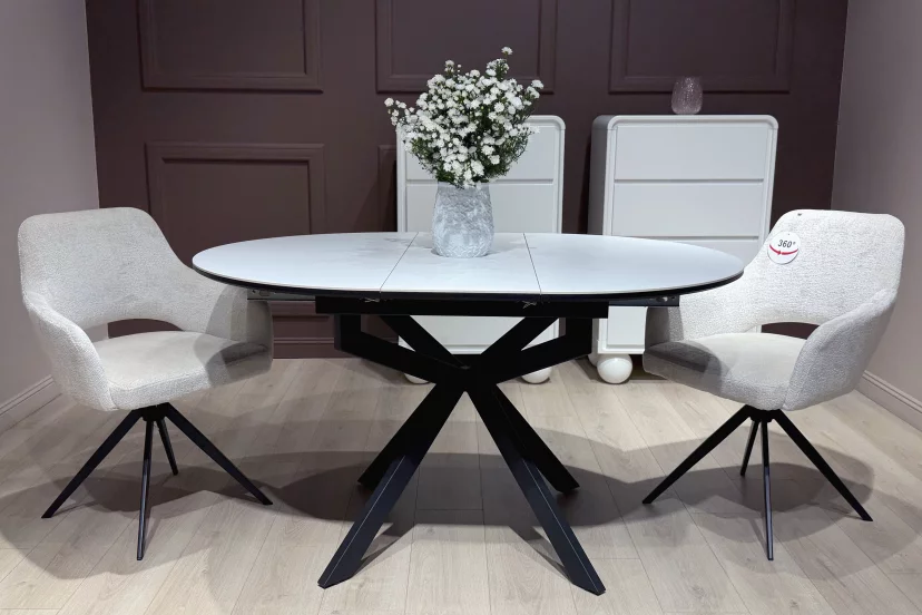Круглий стіл Tilla поєднує в собі сучасний дизайн та практичну функціональність. Верх столу виготовлений з кераміки товщиною 11 мм. Це робить стіл повітрянішим, але в той же час надає йому стійкості.